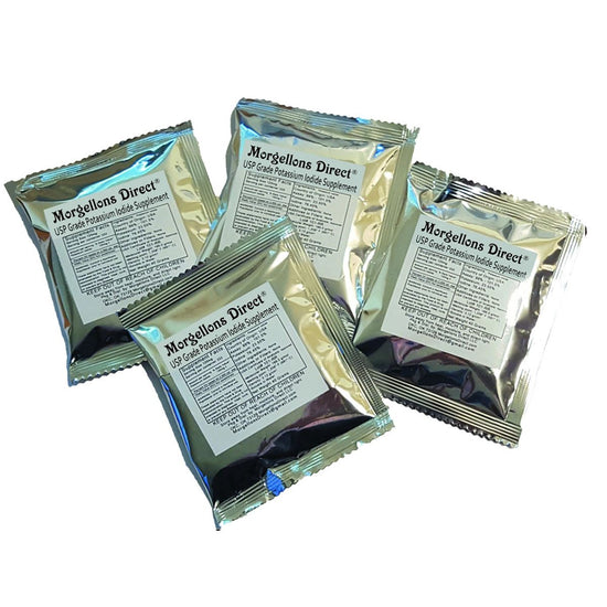 The Refills 4-Pack provides an easy solution to keeping your SSKI Potassium Iodide Solutions Mixing Kit reusable and ready when you need a fresh solution of iodine supplement or used in your own therapies. The 4-pack has an indeterminate shelf life so it is great for long-term storage and an excellent value for bulk purchase. The packets are 40 g each of pure dietary supplement potassium iodide crystals. All of Morgellons Direct potassium iodide/iodine supplement products contain no additives, fillers or preservatives and are naturally vegan and gluten free. Just the good stuff when you need it. Does not include mixing instructions or mixing chart.